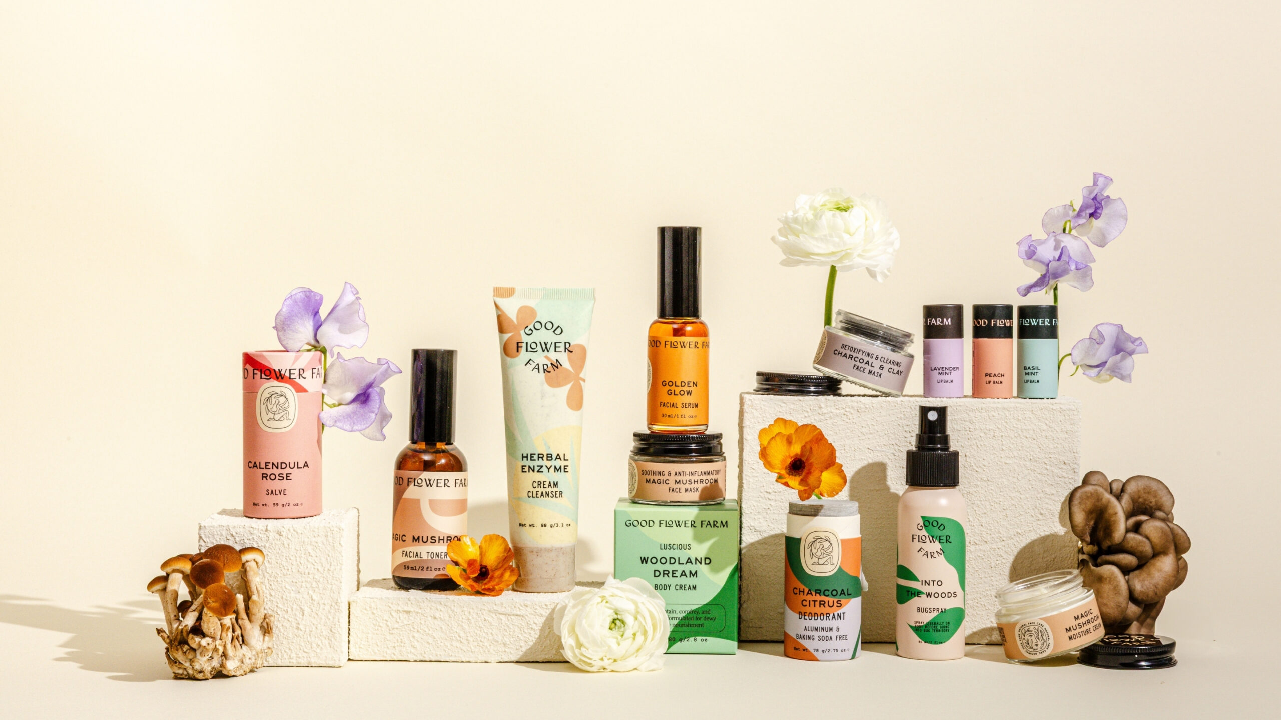 Our products are handmade, low-waste, and abundant in active botanicals that are homegrown or consciously-sourced. Every GFF formula is flower-forward to keep you feeling radiant from the outside in.